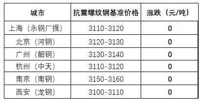 截至午间,国内部分市场螺纹钢(抗震)基价如下:上海市场3110-3120元/吨;北京市场3120-3130元/吨;广州市场3130-3140元/吨;杭州市场3110-3120元/吨;南京市场3150-3160元/吨;西安市场3100-3110元/吨。环比来看,截至上午收盘,全国主要市场一线品牌价格持稳。