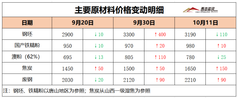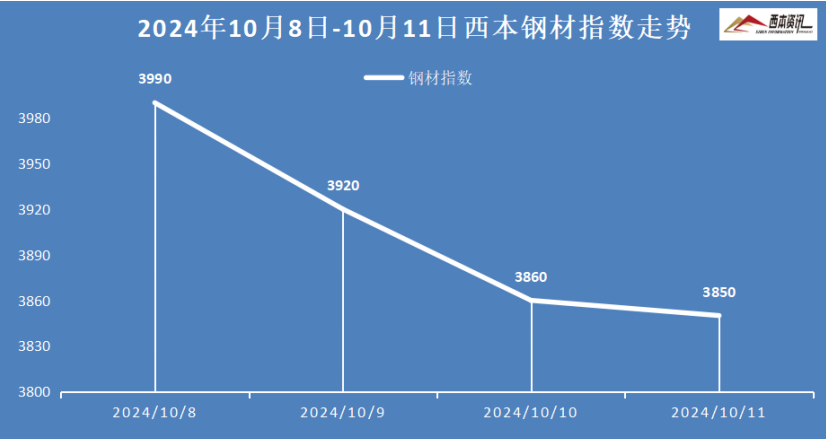 本周国内建筑钢材连续下跌,截至10月11日,西本指数报在3850,周环比下跌100。