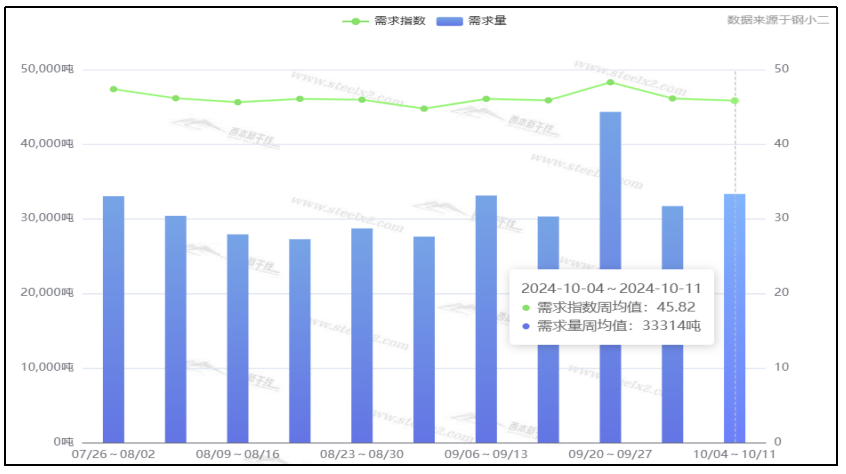 从终端需求来看,据钢小二平台周均值数据显示,10月11日全国工程需求量周均值为33314吨,环比周均值增加5.1%。其中,上海周均值14434吨,环比周均值增加;广州3173吨,环比周均值增加;杭州2998吨,环比周均值下降。工程需求pmi为46,需求略差。
