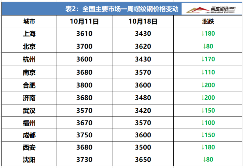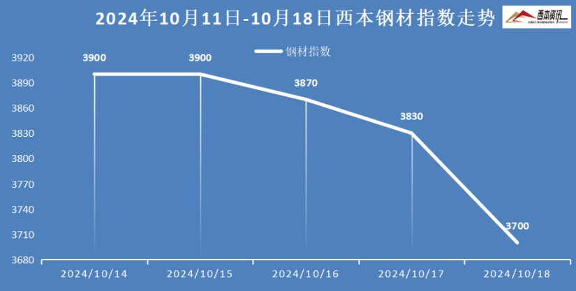 本周国内建筑钢材大幅暴跌,截至10月18日,西本指数报在3700,周环比大跌160。