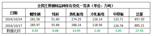 · 2024-10-12[库存看市场]库存环比下降,钢价高位波动