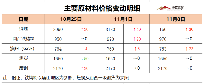 本周国内建筑钢材震荡调整,截至11月8日,西本指数报在3730,周环比上涨20。
