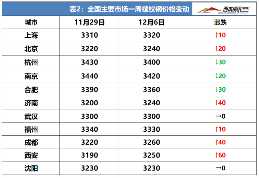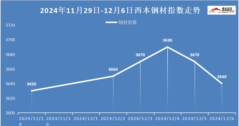 本周国内建筑钢材先扬后抑,截至12月6日,西本指数报在3640,周环比上涨10。