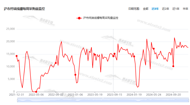 本期,西本资讯监测的沪市线螺周终端采购量为1.77万吨,周环比减少0.56%(见下图)。本周,终端需求环比变化较小。