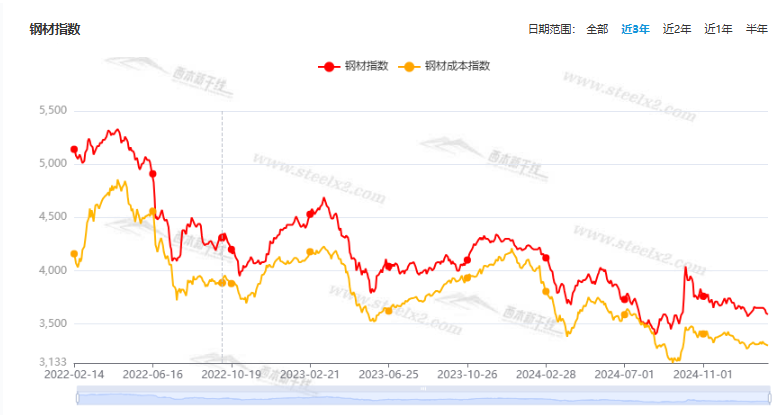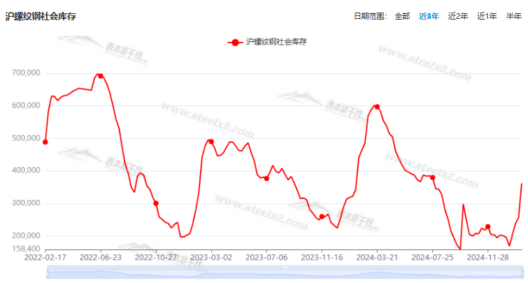 行业面上,中钢协数据显示,2025年2月上旬,重点企业粗钢、生铁日均产量环比继续增加,粗钢日均产量更是连续四旬回升,为去年7月中旬以来最高水平;同期企业库存环比延续增势,创去年8月中旬以来最高。数据表明,钢企生产不断加码,但库存去化节奏较慢。展望后期,在原料价格回落的现状下,钢厂生产积极性很难下降,而需求端不确定性增强,如果没有政策面的刺激,预计建筑钢价仍将低位徘徊。