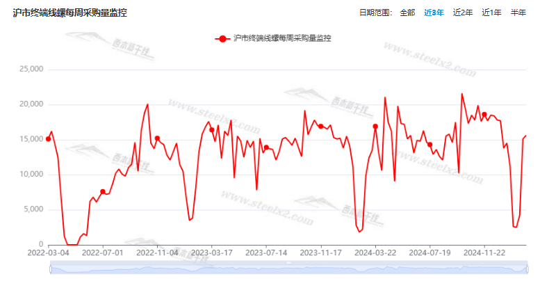 本期,西本资讯监测的沪市线螺周终端采购量为1.56万吨,周环比增加3.31%(见下图)。本周,终端需求环比增幅有限,表明工地需求平缓。