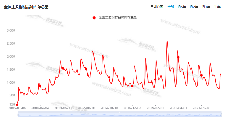 本期,全国35个主要市场样本仓库钢材总库存量为1350.72万吨,周环比增加29.48万吨,增幅为2.23%。主要钢材品种中,螺纹钢库存量为632.28万吨,环比增加22.46万吨,增幅为3.68%;线盘库存量为104.74万吨,周环比增加5.14万吨,增幅为5.16%;热轧卷板库存量为345.06万吨,周环比增加3.81万吨,增幅为1.12%;中厚板库存量为137.57万吨,周环比减少2.08万吨,降幅为1.49%;冷卷板库存量为131.07万吨,周环比增加0.15万吨,增幅为0.11%。