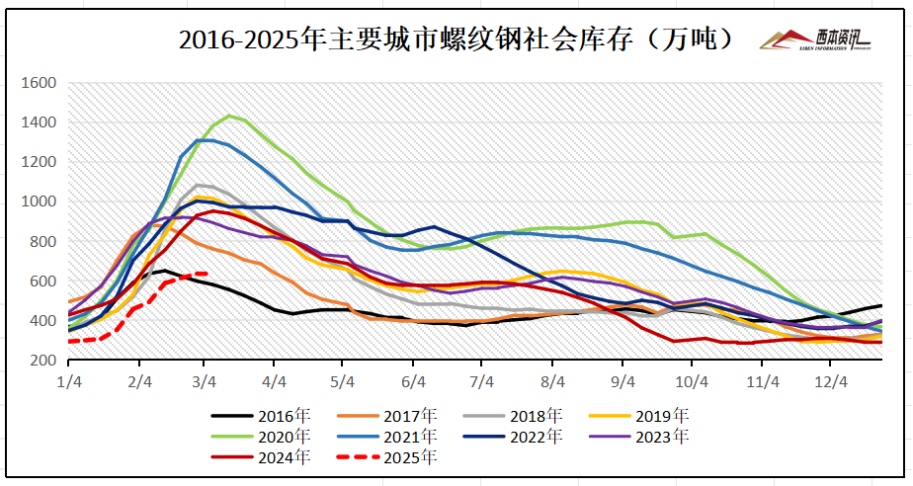 上半周,多地遭遇“倒春寒”,气温骤降雨雪增多,户外施工及运输受限,叠加美国加征20%关税,资本避险空头打压,期螺下跌影响信心,市场报价弱势下跌;下半周,传言限产一度提振,盘面上涨出货略有好转,然而,消息并无可靠来源,盘面再度反转下跌,市场报价弱稳整理。下周国内钢市如何演绎?具体情况来看,在供应端,钢企盈利率53.25%,周环比增加3.03%;高炉开工率79.51%,周环比增加1.22%。在需求端,终端开工缓慢上升,前2月钢材出口同比增长6.7%,家电出口同比增长9.4%。综合来看,本周正值两会召开,政策释放积极信号,财政政策将更加积极;终端方面受资金偏紧影响,部分工程进度缓慢,采购需求表现一般。另外,社会库存处于拐点,为市场提供一定信心。基于,外部环境错综复杂,供需两端不及预期,多空博弈盘面震荡等,鉴于此,我们对下周市场行情持中性评价——蓝色预警,具体来说,西本钢材指数下周将在3460-3560元区间运行。