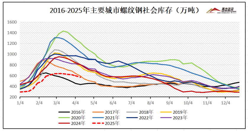 北京市场:本周北京建材价格先弱后强,跌幅60-70元/吨。上半周,中美关税影响下,市场情绪恐慌,现货大幅下跌120元/吨左右。下半周,期货止跌反弹,市场情绪提振,终端采购提速,现货价格反弹60-70元/吨。库存方面:北京螺纹主要库存72万吨,较上周下降5万吨。考虑,刚需有所增量,但关税影响仍在,预计,下周北京建材市场弱势整理为主。