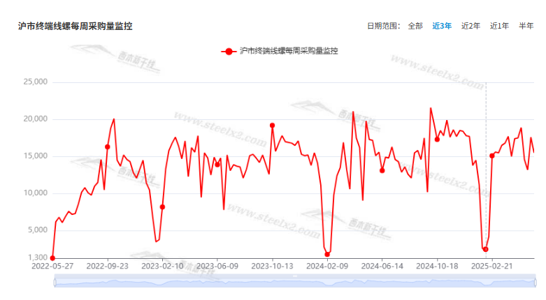 本期,西本资讯监测的沪市线螺周终端采购量为1.55万吨,周环比减少11.93%(见下图)。本周终端需求有所回落,显示刚需力度不足。