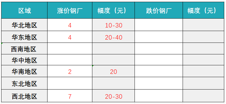 钢厂方面:据不完全统计,上个交易日国内17家钢厂建材出厂价格出现调整,调价钢企全线上调。