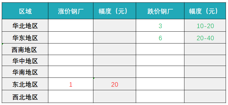 钢厂方面:据不完全统计,上个交易日国内10家钢厂建材出厂价格出现调整,调价钢企多数下调。