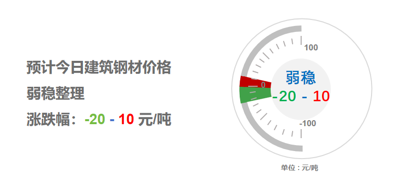 昨日开市,上午期螺震荡偏弱,调价钢企全线下调,终端用户按需采购;午后盘面区间震荡,唐山钢坯小幅见跌,多地建筑钢材报价盘整为主。夜盘期螺微涨整理,盘面多空博弈,交易表现疲软,现货承压运行,预计,今日全国大部建筑钢材价格弱稳整理,幅度-20-10。【本资讯由钢小二旗下西本资讯提供】