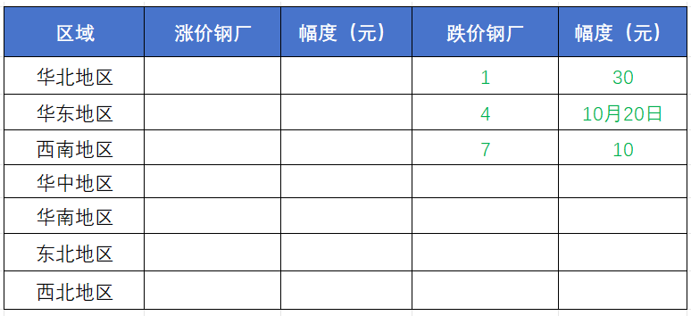 3、调价钢企全线下调