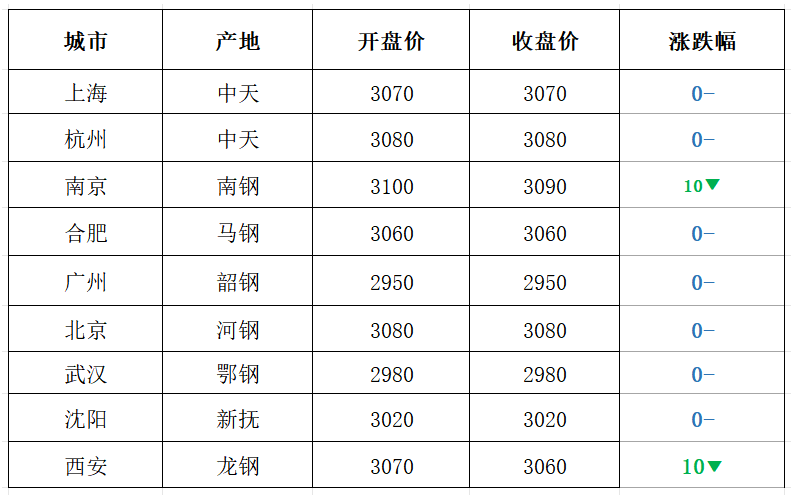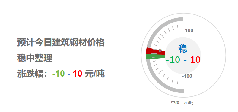 上周五开市,上午期螺涨后回落,调价钢企全线上调,终端用户按需补库;午后盘面震荡运行,唐山钢坯小幅见涨,多地建筑钢材收市价维持平稳。夜盘期螺震荡回升,周末钢坯保持平稳,唐山启动烧结限产,南方强降雨持续,预计,今日全国大部建筑钢材价格稳中整理,幅度-10-10。【本资讯由钢小二旗下西本资讯提供】