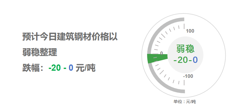 昨日开市,上午期螺偏弱震荡,多数钢企维持平稳,终端用户按需采购;午后盘面延续偏弱,唐山钢坯小幅见跌,多地建筑钢材收市价或稳或跌。夜盘期螺跌后整理,高温暴雨影响需求,需求环比放缓,预计,今日全国大部建筑钢材价格弱稳整理,幅度-20-0。【本资讯由钢小二旗下西本资讯提供】