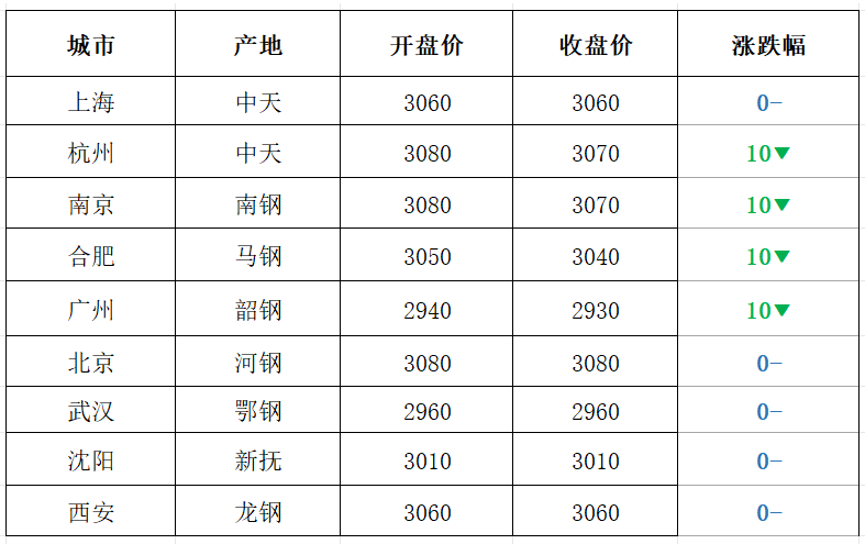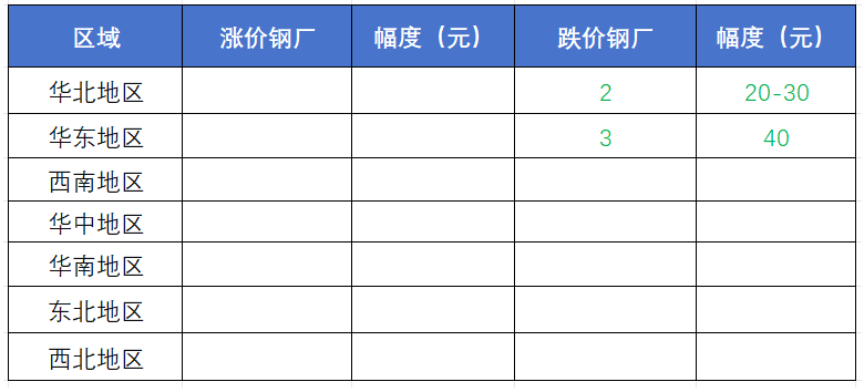 钢厂方面:据不完全统计,上个交易日国内5家钢厂建材出厂价格出现调整,多数钢企维持平稳。